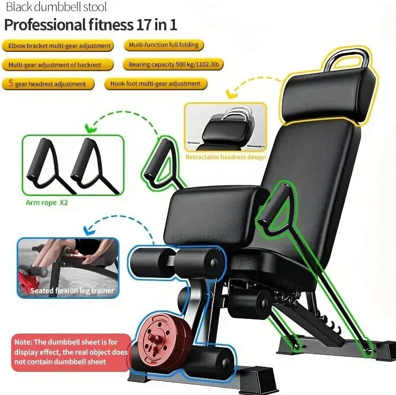 17-in-1 Versatility – Functions as a dumbbell bench, sit-up assistant, backrest stool, and resistance trainer, giving you endless workout possibilities without multiple machines.