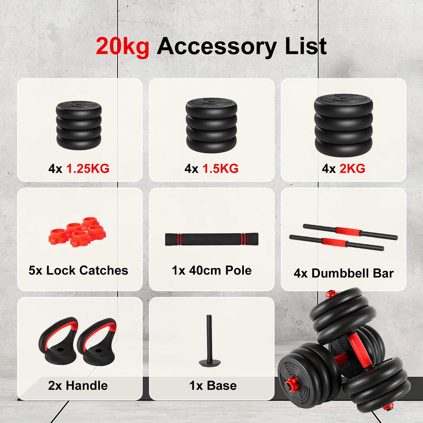 Customizable Weight Training – Includes multiple weight plates (1.25kg, 1.5kg, 2kg) to adjust resistance up to 20kg, perfect for progressive strength workouts.