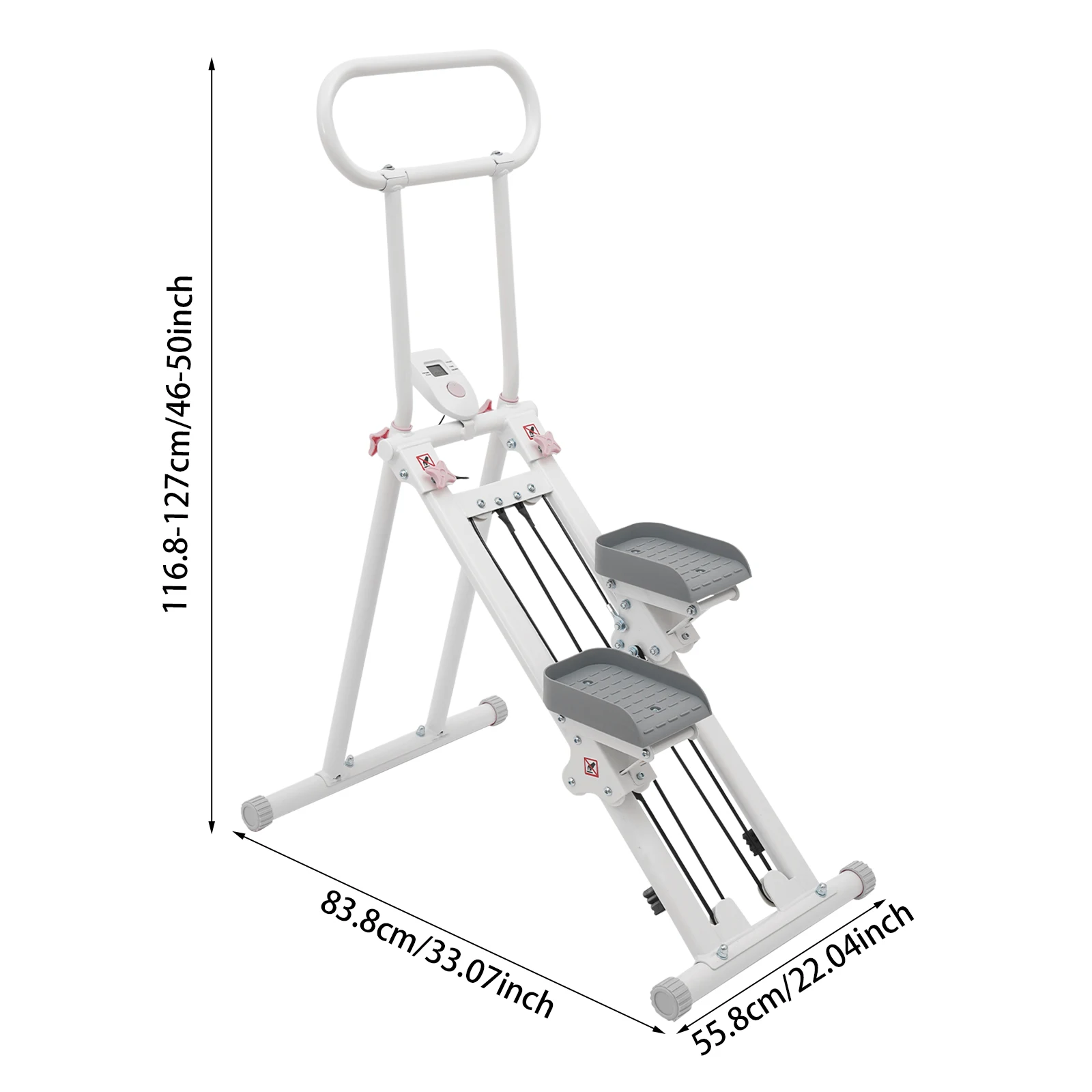 • Adjustable Height – Handrail height (46–50 in) adjusts for different users, making it ideal for the whole family.